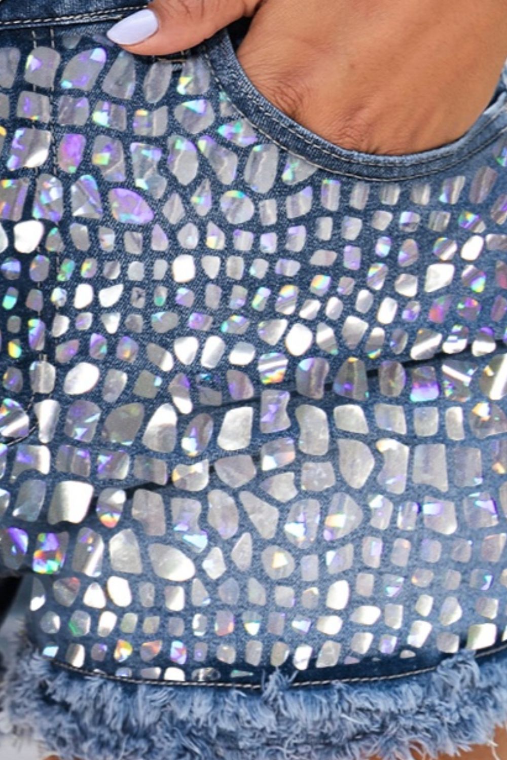 Raw Hem Denim Shorts with Pockets